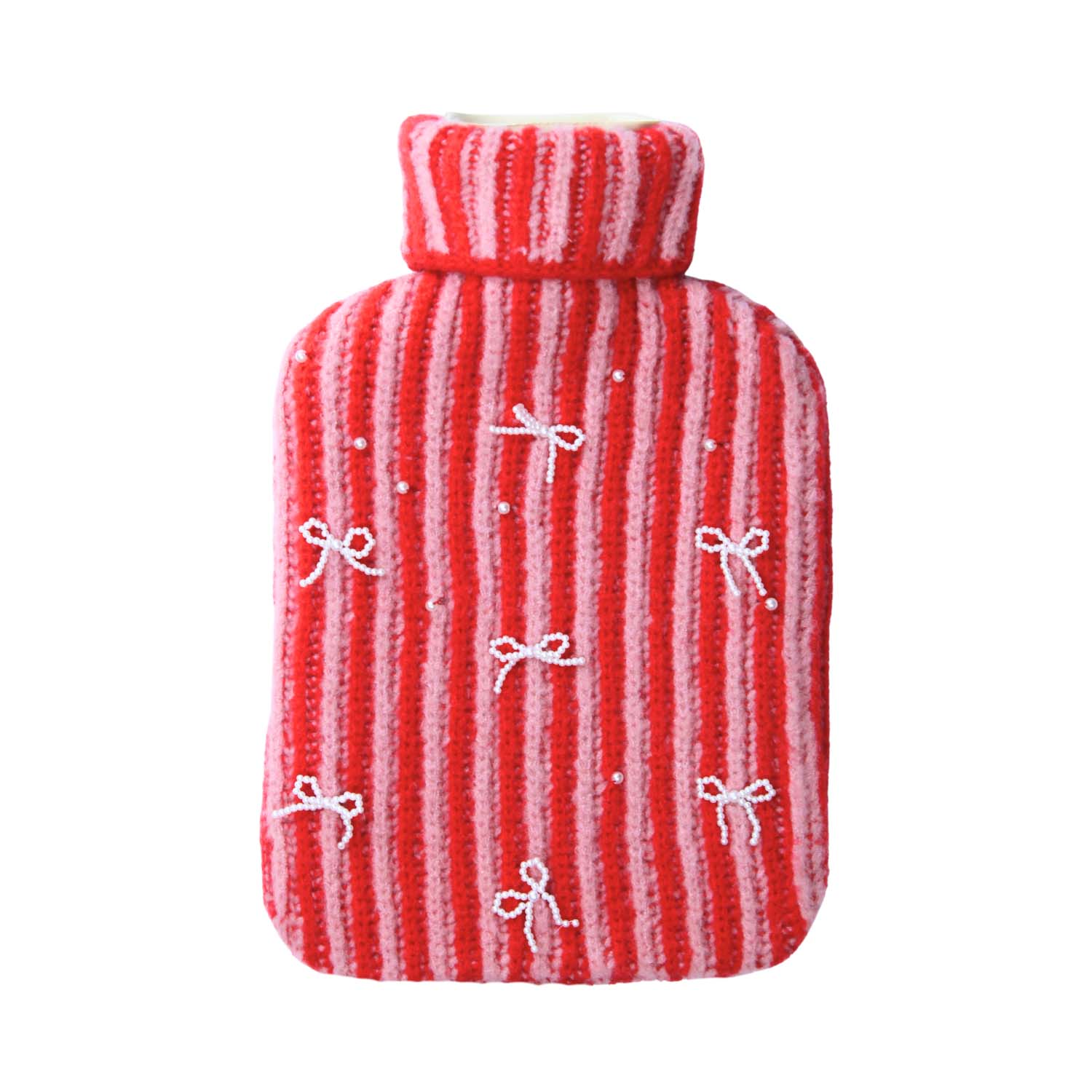 Ladies festive striped hot water bottle with faux pearl detail
