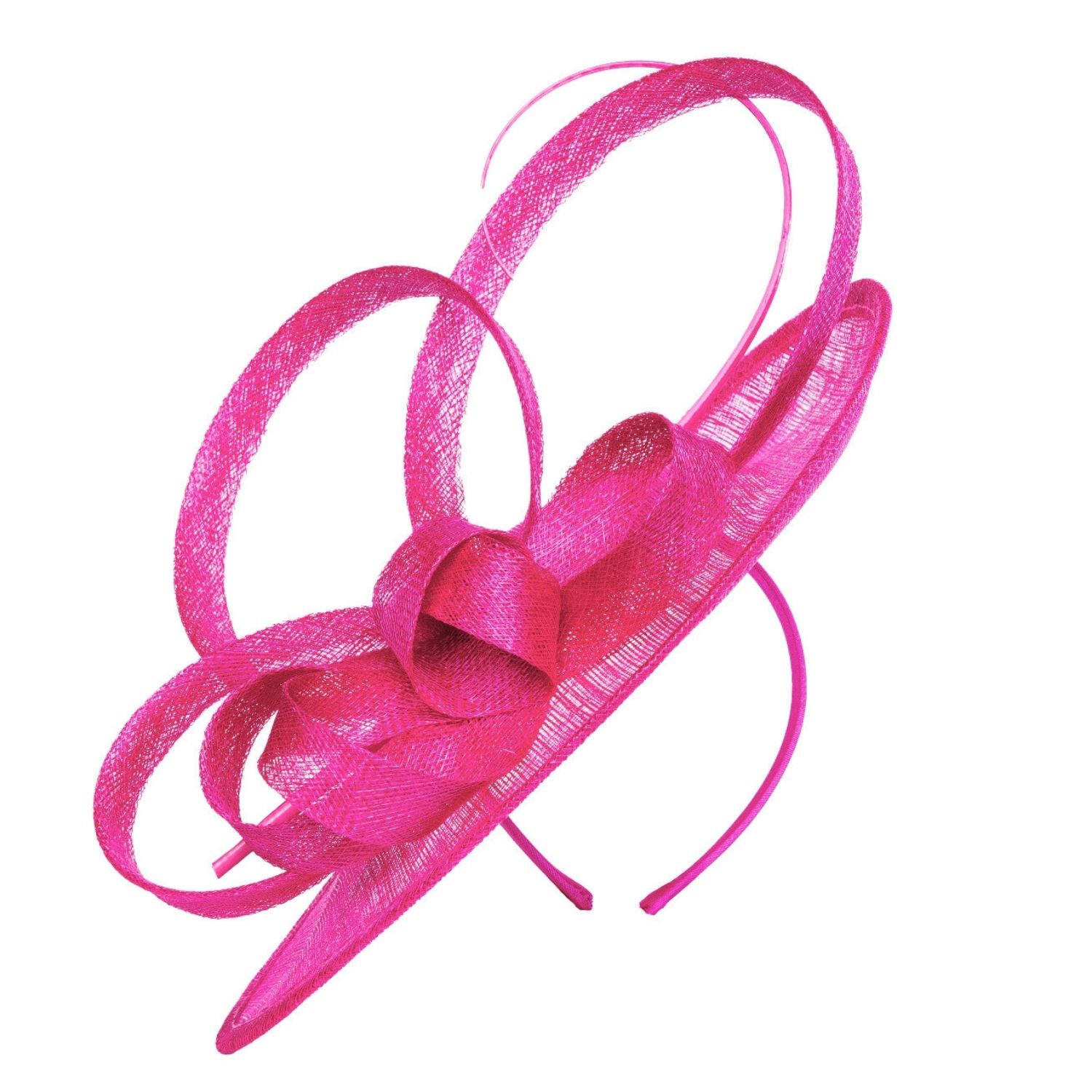 Sinamay disc headband fascinator with oversized loops and quill