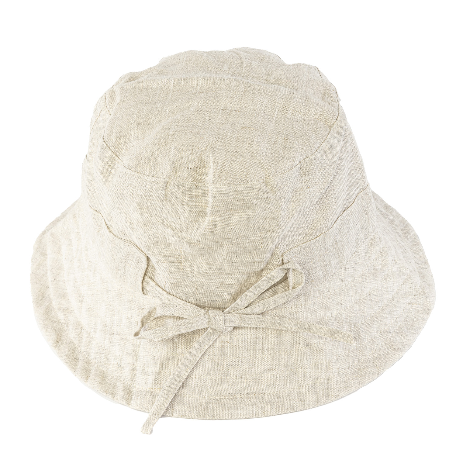 Ladies linen-style bucket hat with bow tie. Pre-order only. Delivery available from March 2026.