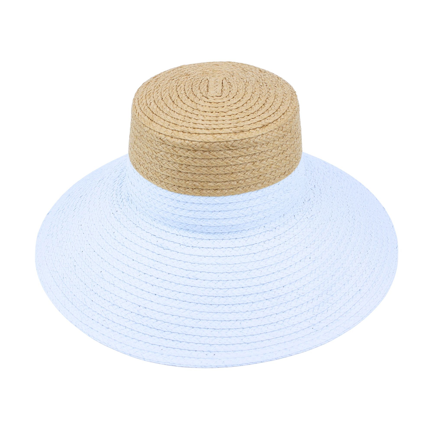 Ladies contrast colour block wide brim FSC paper straw hat. Pre-order only. Delivery available from March 2026.