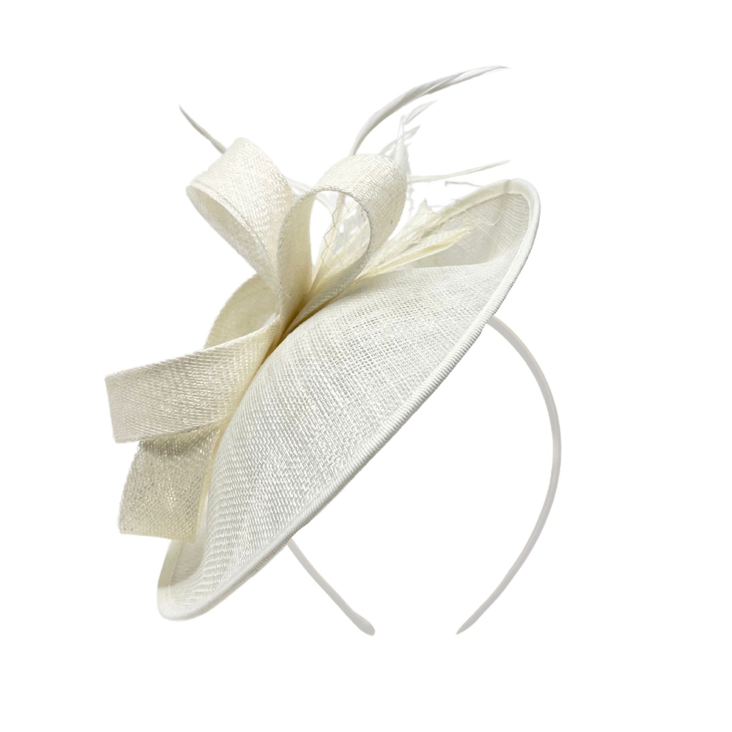 Sinamay small disc fascinator with loops and feathers