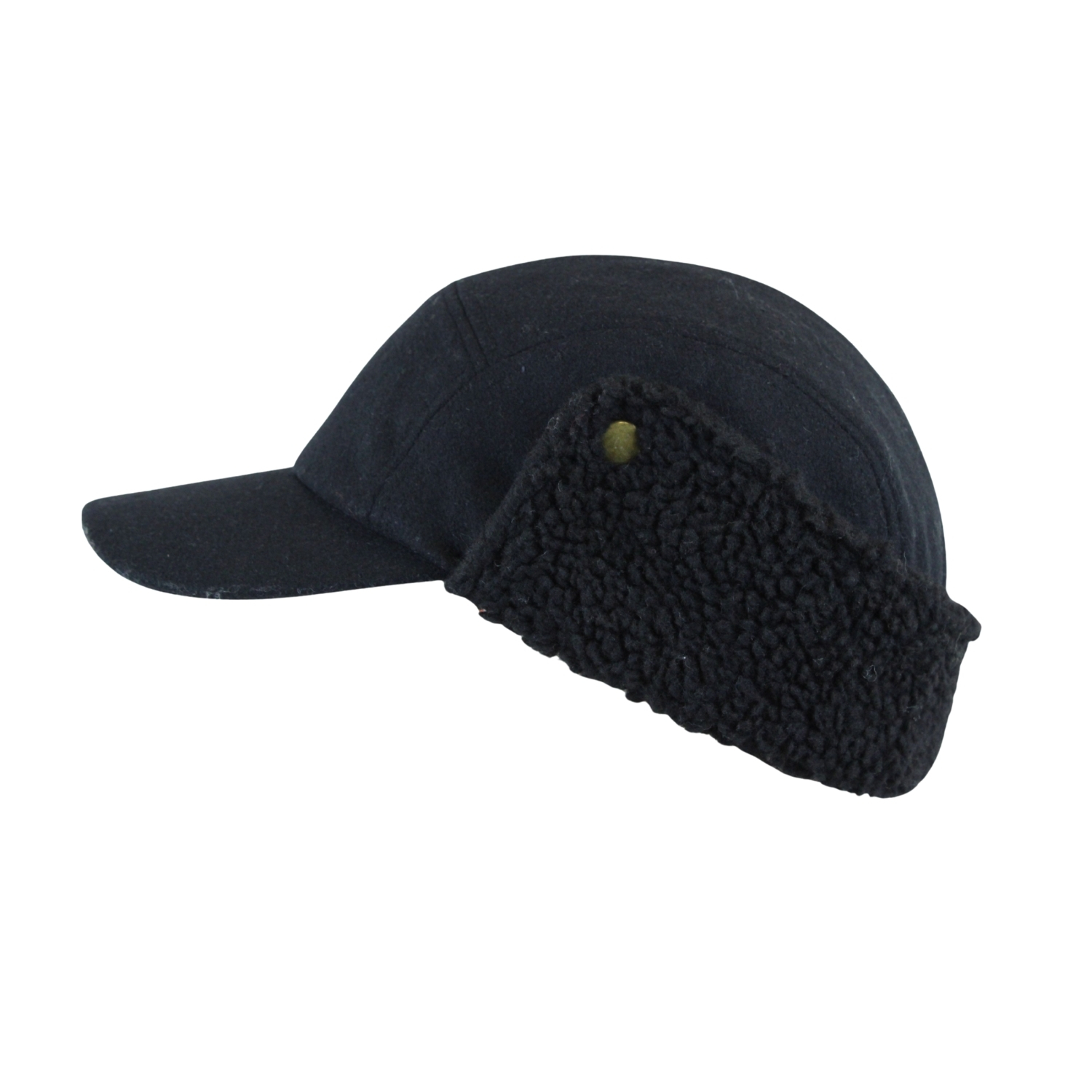 Mens felt baseball cap with quilted lining and flip-back borg ear cover