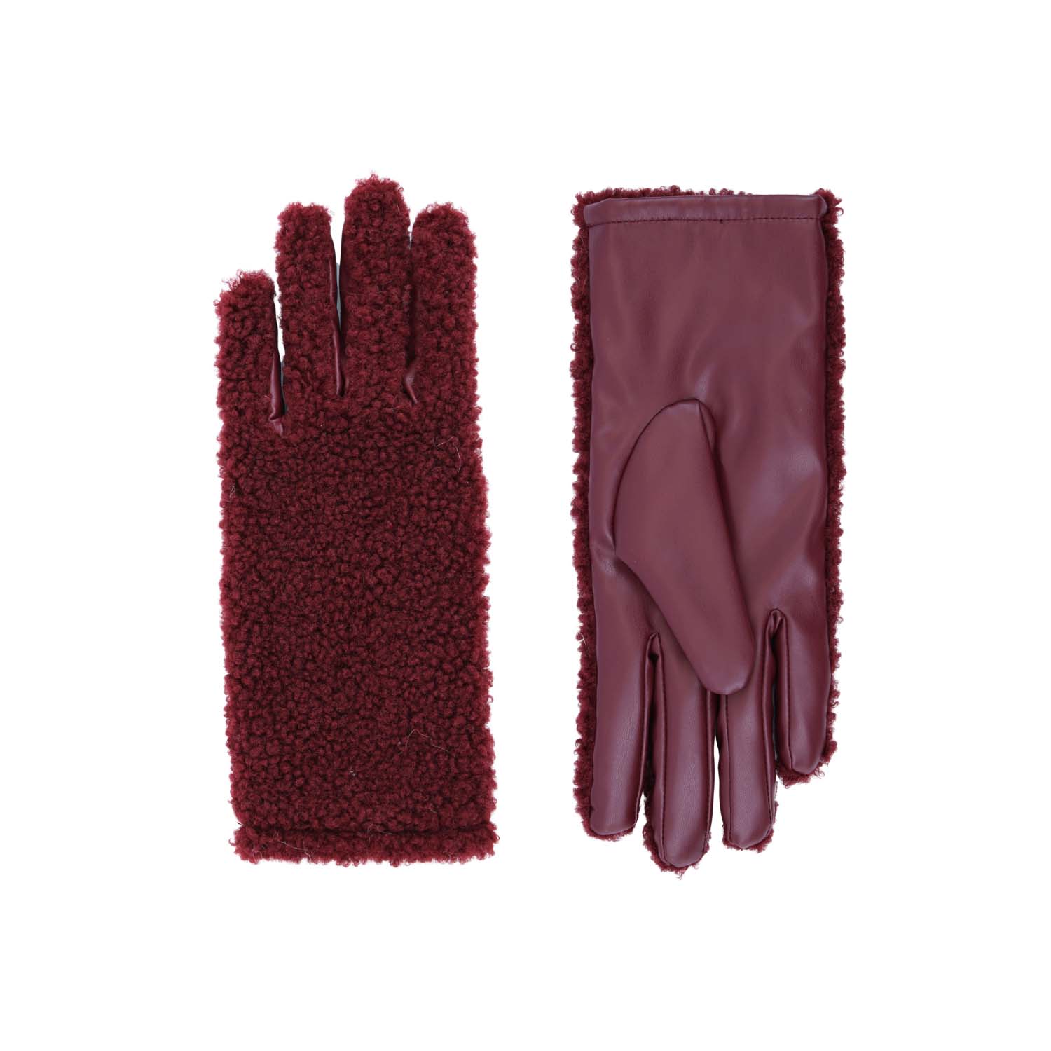 Ladies vegan leather and borg gloves